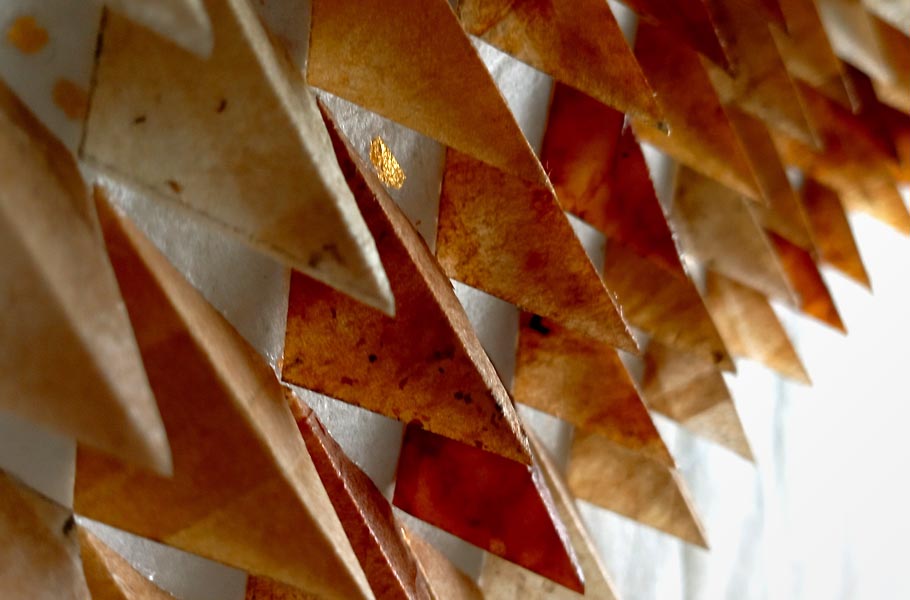 CITRONNE Gallery – Athens presents the solo exhibition-installation by Nikos Podias, Safe Area. Nikos Podias draws his themes from traditions and echoes of global culture. In his practice, he explores the potential of paper. The resulting works—textures, forms, rhythms, and patterns—generate objects and creatures charged with the magical and apotropaic qualities of amulets. Safe Area is a new body of work that constructs an unexpectedly mysterious and captivating environment. Visitors perceive luminous reflections and shadows diffused through the works — a visible lightness intertwined with the deceptive sharpness of the materials; the paradox of a paper armor. These seemingly contradictory elements compose a liminal state between safety and vulnerability.