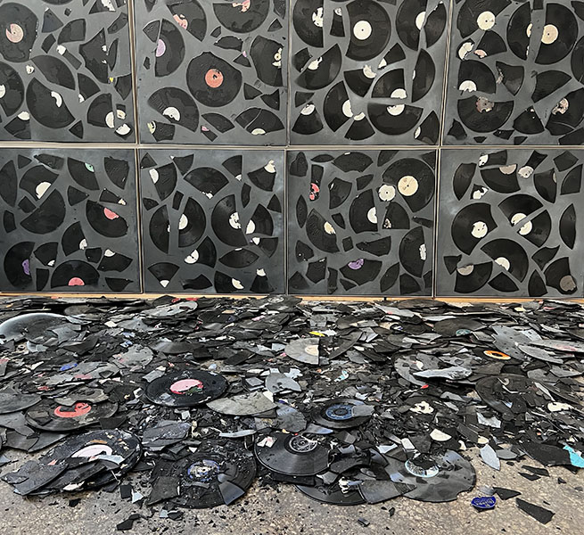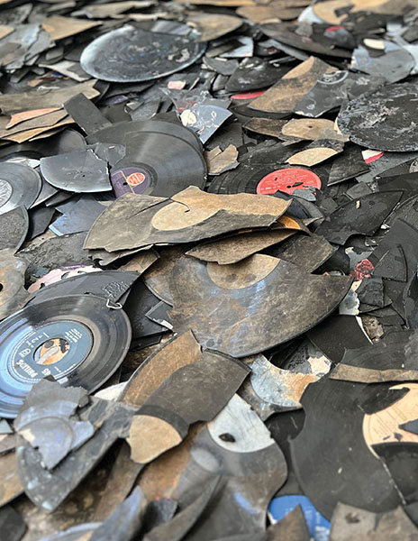 Rizoupolis: May 2006. The vinyl record factory of COLUMBIA is demolished; the "black marbles" are scattered in pieces … unravelled tapes strewn all over the territory … metal stampers glinting in the sun … COLUMBIA was the dark, black spot … the negative of an Olympic flash, of a national phantasmagoria!